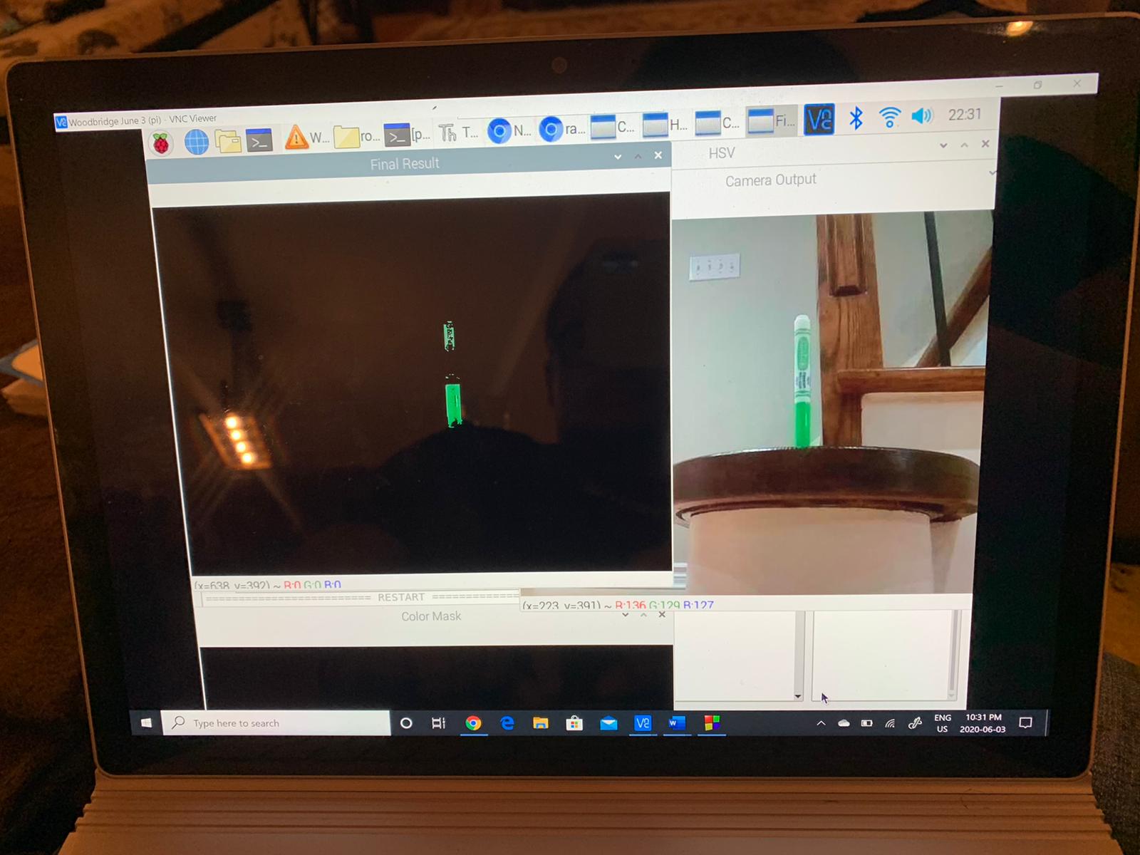 Currently, we have a successful running program that when run, allows the robot to autonomously search for a specific colour hue. When this is detected by the camera, the Raspberry Pi processes the image using OpenCV in a Python3 script and sends a command to the motors to follow the colour until it is within 5cms of it. This program has not yet been configured to be activated through the glove, but it will be added upon future iterations of the project.